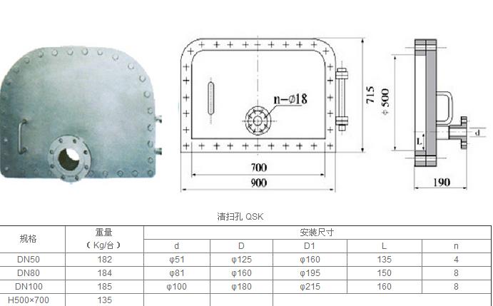 GSQ清掃孔裝于重質(zhì)油罐底部,清掃油罐進(jìn)要放出污水及掃除罐內(nèi)污泥,其中GSQ-50A、GSQ-80B、GSQ-100C,帶有放水管,出廠時不供應(yīng)孔頸及加強(qiáng)板。